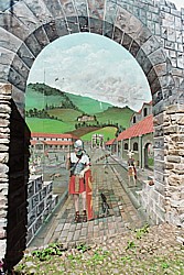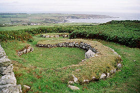 [下:右→左]ローマ軍(想像図)、ローマ浴場(右も) (2005年8月カエレオンにて撮影) 5世紀から10世紀にかけて、ローマ人と、アイルランド人によってもたらされたローマ・カソリックは、ウェールズのケルト人の間に次第に広まっていった。ローマ・カソリックは、かつては儀式に使われたと思われる、ケルト民族の神聖なる場所を受け継ぎ、イチイの木を植えることで、聖なる場所として使いつづけた。ところでイチイの木は、ケルトにとっても神聖なる木であった。このことがケルトの民が新しい宗教が受け入れるのを助けたことは、想像に難くない。ローマ・カソリックは、同時に、新たに教会を建てていった。アバーダロンにある聖フウイーン教会(St. Hywyn's Church)(右写真)は、ローマから訪れた聖人によって建造された。その教会の名には、建築の中心となった聖人の名が被せられた。 ウェールズの地名に多い、“llan”(スラン)という言葉が、ローマ・カソリックの勢力の強さを証明している。この“llan”(スラン)は、元来は「聖なる囲まれた土地」を意味したが、それが転じて、「教会」を意味するようになった。この言葉が数多く地名として現在も残っている事実は、英国国教会布教以前に、カソリックがウェールズで根づいていた証明となる。なお地名でこの言葉が使われている場合、“llan”の後には、通常、聖人の名が続く。 ローマ撤退後:ケルト人からウェールズ人へ ローマ人がブリテン島の支配を諦め、ブリテン島から撤退した後、様々な民族が入れ替わりに流入してきた。特に隆盛を誇ったのは、アングロ=サクソン人である。彼らはブリテン島の南東の浜から上陸し、北と西の両方向にその勢力を拡大していった。 彼らに追われ、ロンドンからその山岳地帯に逃げてきたケルト人と、もともとこの山岳地帯に住んでいたケルト人が合流し、自らを「カムリ」(同胞)と呼んだ。そして、ここでいくつかの王国を形成した。この時、アングロ=サクソン人は彼らのことを「ウェリース」(Weleas)(余所者)と呼んだ。これが、ウェールズの始まりと言われている。 バルズのその後:1.中世宮廷での職業として 中世(13-14世紀)のウェールズの法律では、古代ケルト社会の職業のひとつであったバルズが、未だに高い地位の職業であったことを記している。 ヴェネドティアン法(Venedotian Code;北ウェールズの法律)、ディメティアン法(Dimetian Code;西ウェールズの法律)、グエンティアン法(Gwentian Code)は、それぞれ宮廷で王に仕える24の官吏を定義している。その中で、ヴェネドティアン法では上から8番目に、ディメティアン法とグエンティアン法では、それぞれ11番目に「王室のバルズ」(Bard Teulu)として挙げている。バルズは数人で仕え、彼らは詩人のギルドもしくはバルズ団(Order of Bards)として組織されていた。バルズ団には規則があり、主席バルズとその下に位置する宮仕えのバルズに分かれた。また、規則は詩を作ることが職業であることを強調していた。 ヴェネドティアン法は、食事や宴席で王とともに座ることを許されるのは13人と規定している。その中に主席バルズと宮仕えのバルズは司祭や客人、そして王室長らと一緒に含まれていた。 王が歌を所望した場合、それに応えるのはバルズの役目だった。最初に歌うのは主席バルズである。1番目の歌は神の歌で、2番目にその宮廷の王について歌った。即ち王を皆の前で褒め称えるのが、この時の役目だったのである。その次に宮仕えのバルズが、様々な主題について3曲歌った。 対して王女が歌を所望した場合、歌うのは宮仕えのバルズの役目だった。王女が望む限り、バルズは歌い続けたと伝えられる。この際には、ホールに集った他の人たちを邪魔しないように、低い声で歌ったという。王女の気晴らしというわけなのだろう。 また宮廷裁判官に与える3つの装飾品は、王、王女、そしてバルズから与えられた。この装飾品は、生涯において売ることも、他人に譲渡することも出来なかったという。 これらの事柄からわかるように、中世の宮廷においてもバルズはかなり高い地位の職業だったのである。 バルズのその後:2.職業体系の崩壊 時が経って16世紀にはいると、他のヨーロッパ諸国同様、ウェールズの社会にも変革の波が訪れた。この時、バルズは徐々に変革の速度を早める社会についていけなくなり、ひとつの職業として成り立つことが難しくなった。そしてこの時代、ついに職業詩人のギルドは、解体することになるのである。 中でも大きかったのは、1284年と1536年のイングランドによるウェールズ併合/統合の与えた影響である。まず1284年の併合時、イングランドの法律が、バルズをひとつの職業として規定したウェールズの法に代った。つまりバルズは法の加護をこの時に失った。後には宮廷がバルズを召抱えることを、イングランドは法律で禁止した。 次いで1536年の統合時に、ウェールズ語は教会を除く公の場で禁止された。貴族の生活や習慣は英国化され、ウェ