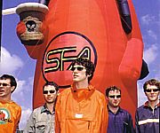「Llanfair〜(in space)E.P.」のジャケット。左がCD。右が7インチ。 ![]() ![]() そして2005年8月、通産7枚目となるアルバム『ラヴ・クラフト』(Love Kraft)が、2007年には『ヘイ・ヴィーナス!』が、届けられた。まさに彼らは、留まるところを知らないようだ。その後、少々音沙汰がないと思いきや、2009年4月には新作Dark Days/ Light Days(2009年)が届けられた(註:SFAのサイトでは3月よりリリース)。『ヘイ・ヴィーナス!』と対になる作品だが、実にSFAの世界を広げる大傑作となった。 [アルバム(選)] ■Fuzzy Logic (96) (Creation / CRECD190) デビュー・アルバムにして、UKチャート最高23位を飾った。ブラス・セクションやストリングスを招いて、カーディフで短期間の間に録音された本作は、SFAのアルバムの中で最もロック色が強い。ポップなメロディーの合間を駆け巡るキュンキュン鳴るシンセと、その下で鳴る歪んだギターが、どことなく、毒気を抜いた初期ロクシー・ミュージックのようでもある。まるでアルバム・ジャケットにコラージュされた男の顔写真のように、曲が変るどとにその音楽の表情は変る。だが、そこには彼らの特徴となる、捻れたメロディとポップ・センスが一貫して流れている。デビュー・アルバムにして、既にその音楽性が確立されていたということか。■Radiator (97) (Creation / SCR 488719 2) UKチャート最高8位。非常に優しく、静かな音ではじまり、方向性が変わったのかと思わせられる。だが、2曲目にしてSFAのアクの強さが健在であることを知らされ、3曲目のアコースティック・ギターと電子音楽のようなシンセにノック・アウトされてしまう。前作以上にサンプラーなどのデジタル・テクノロジーを取り入れ、コーラスにも力を入れた作品となった。まともなようでいて、ねじくれたメロディとひと筋縄ではいかない曲の展開が、SFAの更なる発展を期待させる。■Out Spaced (98) (Creation / SCR 491564 2) シングルB面のみのリリースの曲などを集めた、レア・トラック集。オリジナル・アルバム以上に過激で、ヴァラエティに富んだ曲が並んだこのアルバムは、聴く度に目眩がするほど素晴らしい。まるでイーノ在籍時のロキシー・ミュージックと、初期ソフト・マシーンをまぜこぜにし、SFAのミキサーにかけたようなキッチュな魅力がたまらない1曲目に、先ずはノック・アウト。けだるくも悲しい4、5、7曲目や、ギターとシンセのアクの強い6曲目、展開の早い名曲8曲目、非常に美しく、深い歌詞をもつ12曲目など、次々に炸裂するSFA節に満足しないファンはいないだろう。1曲1曲のレベルが非常に高く、そのため満足度も高い。シド・バレット在籍時代のピンク・フロイドにSFAのフィルターを通したような2曲目や、13曲目後半の電子音楽の洪水は、レア・トラック集ならではの収録といったところ。イギリスで発売された限定盤は変形ジャケットだった。■Guerrilla (99) (Creation / SCR 494594 2) UKチャート最高10位。デジタル・テクノロジーを、SFAの音世界に完全に溶け込ましてしまった傑作が本作だ。ドラムン・ベース(ジャングル)は、久しぶりにイギリスのロンドンで生まれた新しい音楽ジャンルだが、ウェールズ出身のSFAはそれすらも喰らって、消化してしまった。特に6曲目と9曲目でドラムン・ベースを取り入れながら、平然とSFA節で歌うライスは最高に格好良い。アクの強さは、前作以上だ。その間に挟まれた暖かい音の8曲目は、SFAの優しさ溢れる名曲だ。そのタイトル「無から生まれるものもある」(“Some Things Come From Nothing”)とは、いかにもウェールズらしいタイトルだ。英語の“nothing”に相当するウェールズ語“neb”は、日本語の「無」と同じで、英語では不可能な、「無から生まれる」とか「無になる」といった用法が可能である。ウェールズ語を第1言語とするライスは、ここからこのタイトルを思いついたのだろう。■Mwng (2000) (Placid Casual / PLC03CD) UKチャート最高11位。前作から一転してデジタル色が薄れたが、捻れたポップ・センスとアクの強いSFA節は健在だ。しかし言葉が変れば、その音楽にも変化が生じる。全曲がウェールズ語で歌われており、これまで以上に歌詞にウェールズの姿が現れている。9曲目では、ローマ人が作ったウェールズを南北に横断する道を車で走ることを歌うが、ここにはウェールズ民謡の響きも聴かれる。SFAにしては、珍しいことだ。このアルバムの歌詞はウェールズの歴史や現状を反映し、時に悲惨なものとなる。しかしこれらの暗い歌詞を明るく響かせしまうのは、虐げられた民族である、ウェールズ人特有の反骨精神から生まれる気質だろう。アルバム全体に、ウェールズの民が流した血が染み込んだ土の臭いがある。なお個人的な感想だが、SFAはウェールズ語で歌ったほうが、自然体に近いように感じられる。■Rings Around The World (2001) (Epic / 5024132) ポール・マッカートニー、ジョン・ケイルらが参加したこのアルバムは、再び英語で歌われている。前作ではウェールズの内側へと向った彼らだったが