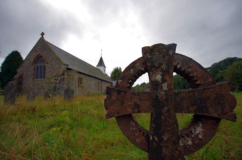 The inside of the church* / The old celtic cross in the churchyardR.S. would read books at his room in the morning, expecting he could catch a sight of a rare bird through the window. In the afternoon he visited frequently the parishioners and listened to the old. One gray autumn afternoon in 1942 he saw a farmer in the fields docking the swedes silently. He was very impressed by the sight and wrote a poem called 'A Peasant.' It was the first time his symbol of the hill farmer named Iago Prytherch appeared. Poor hills, a poorer farmland between them and a silent farmer clinging to it -- the stage was set and the main character appeared. This village and its villagers became the theme for his poetry; this small village made R.S. a poet, as the Welsh hills did Morgan of The Minister "part of the place."
