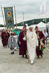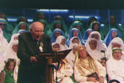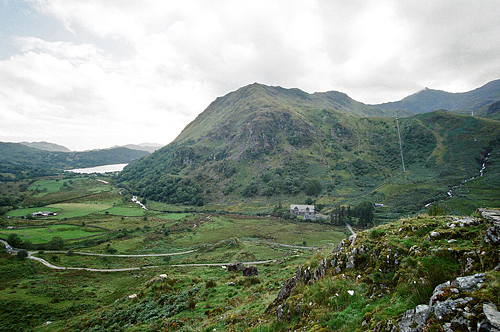 シティの中心的存在、聖デヴィッドの大聖堂 (クリックで拡大) (撮影:2011年08月16日) ウェールズといえば、力強い男声合唱団だ。同じケルトの国アイルランドでは、伝統的な音楽といえば、アイリッシュ・ダンスの伴奏にも聴かれる、テンポの速い踊りの音楽だ。しかしウェールズの伝統的な音楽といえば、教会、特に、非英国国教徒の教会で歌われる、男声合唱となる。炭鉱夫や農民、そして漁師などが集い歌うその姿と歌からは、屈強なウェールズ人の姿が浮び上がってくる。 『丘陵地帯』(Valleys) ウェールズは起伏の富んだ土地で構成される。たとえば北部。そこにはスノードンを中心とした山岳地帯(moutains)が構える。その一方で、南部、中部、西部には、丘が多く見られる。イングランドの大半が平坦な土地で占められていることもあり、この丘陵は特にウェールズを現す代名詞にもなっている。 ところで英語では丘のことを“hill”という。しかしその他にも丘を表す言葉がある。そのひとつが“valley”だ。正確には「山と山のなだらかな谷間」や、「渓谷」を表すこの言葉、ウェールズでは特に南部の丘陵地帯を指す場合に使われる。 南部の丘陵地帯といえば、ロンザ丘陵やスウォンジーのあたりが有名だ。これらの地帯は、いずれも鉱物資源が豊富である。そのため産業革命でイングランドの鉱山が開発されると、次にその目はウェールズに向いた。そこでまずは鉄鋼業が開かれた。ついでその鉱山の多くは、石炭を採る炭鉱へと代わった。これら工業地帯の丘の連なりを、特に最初のスペル“v”を大文字化し固有名詞的に“Valleys”と呼ぶのである。 即ち“Valley”とは英語文化圏であり、産業革命と同時に急速に発展した元炭鉱地帯を指す暗喩になっている。 北部の山岳地帯が古くからの伝統を守る一方で、近代に急速に発展した『丘陵地帯』は、ある種近代化したウェールズの代名詞でもあった。実にこの地から、エール好きの炭鉱夫というウェールズのステレオタイプや、賛美歌の合唱、chapel(非国教徒の教会、特にメソジストを指す)、一連の公営住宅(※一時期炭鉱は国営企業だったために、炭鉱夫とその家族の住宅も国が保障・運営した)、ラブスプーンなどこれまでのウェールズにはなかった文化/伝統が生まれている。 なお日本語では特に二重カギ括弧を伴い、『丘陵地帯』と記すことがある。 ![]() 『丘陵地帯』と公営住宅 (撮影:2007年09月03日) 平坦なイングランドと比べても、ウェールズには山や丘陵が多い。その中でも北部のスノードニア山脈(Snodonia Mountains)と南部のブレコン・ビーコンズ(Brecon Beacons)は、ウェールズを占める二大山脈(二大山岳地帯)といえる。どちらも国立公園だ。 特に北部のスノードニア山脈は、イングランドとウェールズをあわせた中で最も高い標高を誇るスノードン山(1085m / 3560ft)を内包することでも有名だ。 この山を中心に、アル・アラン(Yr Aran)、スリウェッズ(Lliwedd)、クリブ・ア・ジスグル(Crib y Ddysgl)、クリブ・ゴックハ(Crib Goch)の5つの山からスノードニア山脈は形成される。 ![]() スノードニア山脈とグイナント湖(Llyn Gwynant;左端) 画面向かって右手の雲のかぶった高い頂がスノードン山(撮影:2011年8月8日) スノードン山の頂上へは徒歩で登ることもできるが、蒸気機関車がサンベリス<スランベリス>から季節運行している。この蒸気機関車は1896年より運行している。 ![]() スノードン山(撮影:2011年8月8日) アイステズヴォッドはウェールズの伝統芸術と文化を祝して行われる、ウェールズ民族を挙げての祭典だ。メインとなるのはウェールズ語詩のコンテストだ。その他にもウェールズ語学習者向けのコンテストをはじめ様々なコンテストが行われるが、このウェールズ語詩のコンテストを勝ち得たものだけが、アイステズヴォッドの語源である“椅子”に座ることが許される。これがウェールズ人として最も名誉なことといわれる。 なおこの本戦のコンテストに出場するには、各地方毎に行われる地方大会(小文字のeisteddfodと表記される)を勝ち抜かねばならない。 アイステズヴォッドでは、これらコンテストの他、現在では歌、演奏、踊り、劇、詩の朗読などがステージで披露される。また会場中には数多くのパヴィリオンが開かれる。これらパヴィリオンでは食文化の紹介から本や楽器、伝統工芸品やウェールズグッズなどの販売や展示や、彫刻や絵画の展示なども行われている。そしてウェールズ文化/ウェールズ語の祭典だけあって、ここで中心となる言語はウェールズ語である。 アイステズヴォッドが最初に開催されたのは1176年だ。ウェールズ内に存在する王国付のバルズ(職業詩人)の力量を競わせるのが、その目的だったといわれる。現在のようにウェールズをあげてのフェスティヴァルになったのは、19世紀末のこと。現在では毎年7月下旬から8月上旬にかけて、開催地を変えて行われる。 なお、2006年のアイステズヴォッドは8月5〜12日に、スウオンジーの郊外ヴェリンダー(V