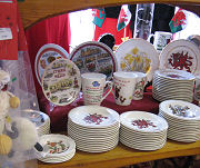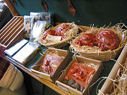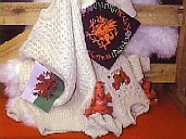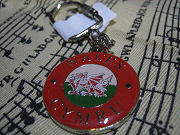 ――ウェールズ名物―― ウェールズといえば、羊。街中から逸れ、少し田舎に入ってみよう。囲まれた草原や、丘の上に、必ずといっていいほど羊の群を見ることが出来る。しかし、もともと臆病な動物なので、驚かしたりしないように。カメラを向けただけで逃げていくほど、彼らは臆病だ(左写真は望遠レンズに驚き、餌を食べることを忘れた羊)。 家畜の羊は、丘や山で放牧されている(右写真;撮影2003年中部ウェールズ)。そのため、非常に身が引き締まっている。エリザベス朝時代に、イングランド人の食卓にウェールズの羊が乗るようになり、その存在が他の国々で急速に知られるようになった。そのため現在ではウェールズ人の口に入るよりも、イングランドやヨーロッパ諸外国に出荷されるほうが多いといわれている。そのため、羊料理のレシピは伝統的なものを除けば、然程多くはない。肉の臭みが気になるので、羊の肉を敬遠する人もいるようだが、そこはハーブと一緒に調理するという生活の智恵で、彼らは克服している。 レシピ本によく登場するのは、首や関節周りの肉を使った料理だ。また、いずれも肉の塊を煮たり、焼いたりするものばかり。内臓を使った料理や、ジンギスカンのような料理はないようだ。 羊を使った産業といえば、もうひとつは羊毛を使った製品だ。セーターやマフラーなどの羊毛製品(左写真・パンフレットより)は、南ウェールズや中部ウェールズの工芸品を扱う店や、土産物屋で多く見受けられる。なお英語で羊の総称はsheepだが、大人のオス羊をram、メス羊をewe、そして肉をmuttonという。子羊はlambで、雌雄および肉かどうかを区別する言葉はない。 赤龍グッズ(Red Dragon) 赤龍グッズとは、私が勝手につけた呼び名だ。ウェールズの国旗には中心に龍が描かれているが、それを象った商品のことだ。絵葉書、キーホルダー、旗、ティータオル(布巾)、人形などがある。飲料水の入った瓶やチョコレートなどの菓子類のパッケージに、この龍が印刷されている品物もある。中でも最も目を惹くのは、この龍を象ったぬいぐるみ。手乗りサイズの小さなもの(左写真)から、抱きかかえなければならないほどの大きなものまである。最近では、テディ・ベアのようなものもある。どれも可愛らしく出来ている。私が最もお勧めする、ウェールズ土産である。 ![]() ウェールズ土産の一例 [左→右]絵葉書、ぬいぐるみ、CD CD、ラヴ・スプーン [背景]ティー・タオル (クリックで拡大)