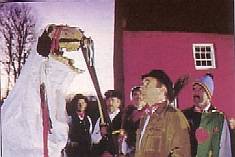 ![]() バルズ団。2007年アイステズヴォッドより。 国際音楽アイステズヴォッドはサンゴスレン<スランゴレン>で行われる。世界平和を訴えるために、1947年から毎年7月に開催されている。2004年にはその偉業をたたえられ、ノーベル平和賞にノミネートされた(惜しくも受賞はならず。受賞者は、「Mottai nai」を唱えたケニアの環境保護活動家ワンガリ・マアタイ氏だった)。2006年は、7月4〜9日に開催され、開催60周年を迎える記念的な祭りとなった。2007年は7月10〜15日に行われた。2013年は7月9日より14日の開催予定だ。 詳しくは国際音楽アイステズヴォッドの公式サイトで確認のこと。 ラグビー(Rugby) ラグビーは産業革命後にもたらされたウェールズの近代化が、民衆の間に根づかせたもののひとつだ。1870年代に学校教育でも熱心に取り上げられるようになり、ものの本によるとラグビーが根づいたのは、南ウェールズ・サッカー・クラブ(the South Wales Football Club)が設立された1875年以後のことだ。 ラグビーは、当初は中流階級のスポーツだった。だがウェールズでは、瞬く間に労働者階級の間で楽しまれるようになった。そしてクラブ設立の6年後にあたる1881年には、ニース(Neath)のキャッスル・ホテル(Castle Hotel)で、ウェールズ・ラグビー協会(Welsh Rugby Union)が結成されている。このことからも、ウェールズ人のラグビー熱の高さが伝わってくるだろう。 そしてラグビー熱がウェールズ中に蔓延するようになったのは、1893年にウェールズのチームがトリプル・クラウン(Triple Crown)を勝ち取って以来のことだ。トリプル・クラウン(ウェールズ語ではY Goron Driphlyg)とは世界最古とも言われるラグビー協会で、年に1回行われるシックス・ネイションズでイタリア、フランスを除く他の国に勝利したチームに与えられる。 ウェールズは1910-12年の間には6回、トリプル・クラウンを獲得し、1976-79年には4年連続してトリプル・クラウンに輝いた。なお4年連続でトリプル・クラウンを獲得したのは、他にはイングランドだけである。 ステレオフォニックスのメンバーやマニック・ストリート・プリーチャーズのメンバーの中には、ラグビーを通じて「ウェールズらしさ」を吸収した者もいる。それほど、国民的なスポーツなのだ。 大きな試合では、必ずウェールズ賛歌や賛美歌がスタジアムを上げての大合唱となる。中でも民謡「小さな鍋」("Sospan Fach")はラグビー協会クラブ・スラネッスリRFC(rugby union club Llanelli RFC)のニックネームになるほど、ラグビーの試合では好んで歌われる。 ヒラエス(Hiraeth) 他の言語に訳すことができない、ウェールズ語の言葉のひとつ。感情を表す言葉。故郷を離れたウェールズ人が、故郷へ強く憧れるさまを表す。そのため「望郷の念」や「憧憬」などと日本語には訳される。 これだけならば簡単だ。数多の言語に訳すことも可能である。しかし、実にウェールズは12世紀のイングランドからの併合時より、自治を失ってきた。つまりウェールズ人による王国ウェールズは、この時より喪失している。この“失われた”王国ウェールズに戻りたい、と、ウェールズ人が感じる。この願いを表す言葉でもあるのだ。 つまりこの言葉ヒラエスは、物理的に離れた故郷のみならず、時間的空間に離れた故郷に戻りたいと強く願う感情を表す。なるほど、ウェールズ人でなければその感情は完全に理解しがたいであろう。ウェールズから響く音楽4. ウェールズ音楽のキーワード ■ヒラエスも参照のこと。 狭軌鉄道(Narrow Gage Railways) またの名を、「偉大なる小型列車」(Great Little Trains)という。産業革命時代に生まれ、発達した蒸気機関車の路線を一部保存したものだ(詳しくはこちら)。そもそも鉄道路線の開発は、炭鉱から資源を運び出す目的で行われ、その後に旅客列車が作られた。 世界最初の旅客列車路線は、ウェールズのスウオンジーで開かれた。これは蒸気機関車ではなく、馬が線路上の客車を引く、馬車鉄道(略して馬鉄)だった(下写真;パンフレットより)。 ![]() マリ・ルイード(Mari Lwyd) 南ウェールズは炭鉱の発達とともに、鉄道など近代的な施設の開発が進んだ。その一方で、奇妙な風習が生まれもしたのである。マリ・ルイード(Mari Lwyd)はそのひとつ。文字通り訳せば「灰色のメリー」だが、特定の人間をモデルにしたものではない。 これはクリスマスから新年にかけて行われる風習で、馬の骸骨を被り、体を白い布で覆ったマリ(Mari)と呼ばれる人間を連れた一団(下写真・パンフレットより)が、家々を訪問してまわるというものである。 ![]() 一団はまず、家の戸口に立ち、詩を朗読し一団の中で競いあう。歌を歌う場合もあるという。家の中へ一団が入ることが許されると、マリは家の女の子を追い掛け回す。逃げる女の子を捕まえては、馬の骸骨の顎を使って噛み、大騒ぎをする。家族が一団に振舞う食事と酒の用意ができると、マリは大人しくなる。そして一団は家族と共に宴に入るのだ。 非常に変った習慣だが、ウェール
