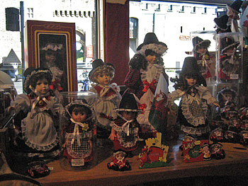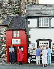 (上3枚、2007年8月10日、アイステズヴォッドにて) 文明が進化し、様々な文化が交錯した現在でも、多くの民族はその民族独自に伝わる衣装をもつ。それを民族衣装/伝統衣装という。 人はその独自の民族衣装をまとうことにより、ある民族の同胞であることを示すことができる。同時にそれは、他の民族と自分を差別化することも可能となる。たとえば数人のアジア人が一同に集ったとする。その誰もが洋服を着ていたとしよう。しかも誰もが無言を貫き通す。そうすると誰がどの民族に属するか判別・区別するのは困難となる。しかしそこで、誰もが民族衣装に着替えるとしよう。日本人は着物、韓国人はチマチョゴリ、中国人がチャイナ・ドレスを着るという具合に。そうすると誰がどの民族に属するかが一目瞭然となる。 つまり民族衣装は、その人が属する民族のアイデンティティ(独自性)を確立させることを手伝う。極端な言い方をすれば、ある民族衣装を身にまとうことは、民族アイデンティティを確立させる。日本人の着物しかり。韓国人のチマチョゴリしかり。スコットランドのキルト(タータン・チェック)しかり。 ウェールズ人女性の伝統衣装は次の通り。背の高い、黒い山高帽にエプロン、白いワイシャツに赤いガウン(もしくはショール)。そして幅広のチェックのスカート。現在では、街中/町中よりも、土産物屋でその恰好を身にまとった可愛らしい人形(下写真)と出会うことのほうが多い。 ![]() 伝統衣装をまとった人形(2007年9月4日、カーディフにて撮影) このように目で見たり、実際に触れることのできる、古くから伝わる有形文化が少ないのが、ウェールズの特徴でもある。 伝統衣装:男性(Welsh Costume for Men) ない。 サンヴァイアプスグウインガスゴゲルアフイルンドロブースサンタジリオゴゴゴッホ<スランヴァイアプールグウインゲルゴウゲールウクウィールンドロブウーリスランダスイリオゴゴゴ> (Llanfairpwllgwyngyllgogerychwyrndrobwllllantysiliogogogoch) サンヴァイアプスグウインガスゴゲルアフイルンドロブースサンタジリオゴゴゴッホ<スランヴァイアプールグウインゲルゴウゲールウクウィールンドロブウーリスランダスイリオゴゴゴ ※以下、この欄のみ旧標準表記は略>は、北ウェールズのアングルシー島(Anglesey)にある町の名前。アルファベットにして、全58文字。世界で1番長い町名だ。それにも関らず、世界で2番目に長いと言われている。これは英語のアルファベット数としては58文字だが、ウェールズ語のアルファベット数にすると51文字になるためだ(“ll”や“ch”はウェールズ語では1文字扱いになる)。そのためギネスブックには、別の地名が世界一として登録されている。 ギネスブックにはふられたが、それもウェールズらしいのかもしれない。一方でイギリス国内では、最も長い地名であり、駅名もイギリスでは最も長尺となっている。 もともとこの町の名前はもっと短かった。しかし1860年ごろに(※1880年代説あり)、観光客を呼び寄せる目的で、現在の長尺のものに変えられた。 とにもかくにも、このような事実から、この町の名前を関したブリットレイルの駅は、ウェールズで有数の観光地となっている。駅にある看板で記念写真を撮る人が多いためか、イギリスの駅にしては珍しく、電車が来る時間以外のホームの立ち入りは禁じられている。駅前には駐車場と、免税品店(右写真;撮影2002年、クリックで拡大)があるが、空港のない場所の免税品店は珍しい。何しろアイルランドとウェールズを結ぶフェリー港のあるホーリーヘッドですら、免税店はないのだから。 そして2014年4月、この町に新たなる歴史が加えられることとなった。町は公式に、公の場での禁煙を人々に呼びかけることを決定。4月8日より、実行に移した。これにより、たとえパブの外でも喫煙は不可能となる。ここまでの措置は、禁煙が進むイギリスでも珍しいと言える。公の場での禁煙が徹底されれば、この町はイギリスで初の禁煙町となる。 ちなみにサンヴァイアプスグウインガスゴゲルアフイルンドロブースサンタジリオゴゴゴッホは、「赤い洞窟の聖テシリオ教会と激しく渦巻く渦巻きの近くの白いハシバミのそばの窪地にある聖マリア教会」と言う意味だ。サンヴァイアプスグウインガスゴゲルアフイルンドロブースサンタジリオゴゴゴッホは、普段は長いのでサンヴァイアP.G.と略されて呼ばれている。本当に長いですよね、サンヴァイアプスグウインガスゴゲルアフイルンドロブースサンタジリオゴゴゴッホって(しつこい?)。 ![]() 駅の看板 イギリスで最も小さな家 サンヴァイアP.G.<スランヴァイアーP.G.>が最も長い地名ならば、こちらは最も小さな家。左写真の赤い家がそうだ。城壁都市コンウィにあるこの家は、間口1.8mで奥行きが2.5m。16世紀に建てられ、1900年まで実際に人が住んでいた。最後の住人はロバート・ジョーンズと言う漁師を生業としていた、身長約187センチ(6フィート3インチ)の男性。実際にこの家で