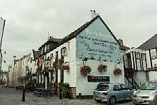 (2002年8月撮影) ゲスト・ハウスは、部屋数が5を超えるB&Bを指す。B&Bと変らないと思って間違いない。だが、中にはホテルに勝るとも劣らない眺めや、ルーム・サーヴィスを提供するところもある。右の写真は2004年8月に宿泊した、南ウェールズはスウオンジーのクレッセント・ゲスト・ハウスの外観だ。町を見下ろす高台にあり、部屋からの夜景は素晴らしかった。話し好きのオーナーは親切だったし、室内も綺麗で、ルーム・サーヴィスも文句なし。宿泊客への新聞や雑誌のサーヴィスもあり、セルフ・サーヴィスながら、靴磨きのセットも揃っていた。 イン(Inn) イン(Inn)は、小ホテルや宿屋と訳される。ホテルのチェーン店であるホリディ・イン(Holiday Inn)のように、近代的なホテルもあるが、昔からあるものは、レストランやパブを兼ねた宿泊施設である。後者は田舎にあるのが普通で、その宿にもよるが、食事を出すパブとゲスト・ハウスがひとつの建物の中にあると思えば、間違いないだろう。大抵宿泊料は、B&Bやゲスト・ハウス並みの手ごろな値段なのが嬉しい。また、飲食をする場所を探す手間が省ける点で、土地感のない場所や初めての土地を訪れる際には便利だ。 ![]() インの例:Golden Lion Inn 1階正面がパブ兼レストランで、部屋は建物裏手にあった。 (2004年8月ニューポートにて撮影) ![]() Black Boy Inn カナーヴォンにある有名なイン。日本のガイド・ブックにも大抵紹介されている。 城壁内にあり、1522年に建てられた建物は趣がある。 (2003年8月撮影) 上記以外にも、宿の種類はある。高級なものだと、マナーハウスや古城ホテルがあげられる。いずれも昔の領主の邸宅や城を、宿泊可能にアレンジしたものだ。優雅な建物や豪華な部屋のみならず、ディナー(要予約の場合あり)や素晴らしい庭園も楽しめる。貴族気分を味わうのも、旅の良い思い出になるだろう。 農家をそのまま宿にした、ファームハウスと呼ばれる宿もある。宿泊料金はまちまちだが、自然を十分に堪能できることは保障つき。