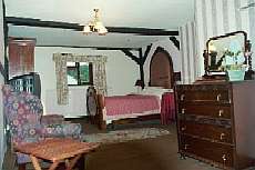 ![]() タンスルイーン・ファーム(Tynllwyn Farm) ウェルッシュプール近郊で名高いファーム・ハウスのひとつ。 宿泊料金も手ごろ(£30〜50)。 丘の上にあり、その部屋からの眺望は見事(左写真)。 客室へと導く廊下・階段も豪華だ(右写真)。 室内(下写真) (2004年8月撮影)