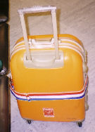 Yoshifum! Nagataの歴代スーツケース オレンジ色やライト・イエローだと空港の手荷物受取所でも見つけやすい。 内部の点検も購入前には必要だ。特に仕切り幕の取り外しの可否や、内部にキャリーハンドル収納のための出っ張りの有無は必ず確認しておくこと。仕切り幕のないものはないだろうが、これについた収納用ポケットの数は確かめておいたほうが良い。このポケットは何かと便利で、良く使う小物や未使用品(電池など)を入れておくと、探さずに済む。