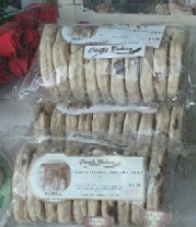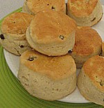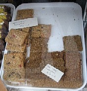 (上段:2005年ウェルッシュプールで撮影 下段:2005年カーディフ中央屋内市場で撮影) ・・・ ウェールズの羊の牛、玉葱、リーク、ポテトを混ぜ合わせ、グレービー・ソースで味付けをしたものを、パイ生地でくるみ焼いたもの。つまり肉パイだが、他のパイなどに比べ大きいのが特徴。イングランドの伝統食でもあるコーニッシュ・パイが平均して250グラムであるのに対し、ウェルッシュ・オギーは500グラムを超える。左の写真は2006年にスランゴスレンで撮影。奥にあるのがウェルッシュ・オギーだが、手前のコーニッシュ・パイと較べてみてほしい。*ウェディング・ナイト・パイ(Wedding Night Pasty) ガウワー州に伝わる伝統料理。昔はサイコロ切りにされたマトンで作られたとか。現在残るレシピでは、羊、玉ねぎ、ハーブなどを混ぜた具をパイ生地で包み、オーヴンできつね色になるまで焼いたパイ料理である。 実にこの料理、夜(ナイト)と謳っておきながら、結婚式の朝食時に出されたそうだ。また作るのは式の招待客である。ではなぜ招待する側が作るのではなく、招待客が作るのか? すなわち式の当日の朝、招待客がこのパイと祝儀を持ち寄る。それが農夫であれ、漁民であれ、田舎で若者が何もないところから新しい生活を始めるのは大変である。招待客は彼らを門出を多くの食事で祝い、また、祝儀で新郎新婦の新しい生活のスタートを経済的に助けたのだ。田舎の地域共同体が育んだ風習から生まれた料理なのだろう。いかにもウェールズらしい、暖かい料理である。 *ウェルッシュ・ラビット(Welsh Rarebit) フライパンを弱火で温めつつ、そこでチーズをエールで溶かす。そこに塩、胡椒、マスタードを加え、焼いてバターを塗ったパンにかける。それをオーヴンで焼けば完成。 これをなぜ“ウェルッシュ・ラビット”と呼ぶかは諸説あるが、実際のところ不明。しかしこの料理が、ウェールズの伝統料理であることだけは間違いない。 *日替わりスープ(Soup of the Day) ・・・ これもイギリス・パブ・ランチの定番メニューのひとつで、ウェールズでも欠かせない。深めのボール皿に注がれたスープにパンが一緒についてくるのも、イングランドと同じ。ただ田舎料理の印象が強いのが、ウェールズで出されるものの特徴。 午後の紅茶と一緒に イギリスには、夕食の前に頂くアフタヌーン・ティーの習慣がある。ただ悠然と紅茶だけを楽しむのではなく、気のあった友人と語りあったり、スコーンと呼ばれるお菓子をつまんだり、と、イギリスで最も優雅な時が過ぎてゆく。ただしこのお菓子が曲者で、食の細い日本人ならば夕食代わりになるほど。ここでは、ウェールズでのお茶請けを並べてみた。 *ウェルッシュ・ケーキ(Welsh Cake)
